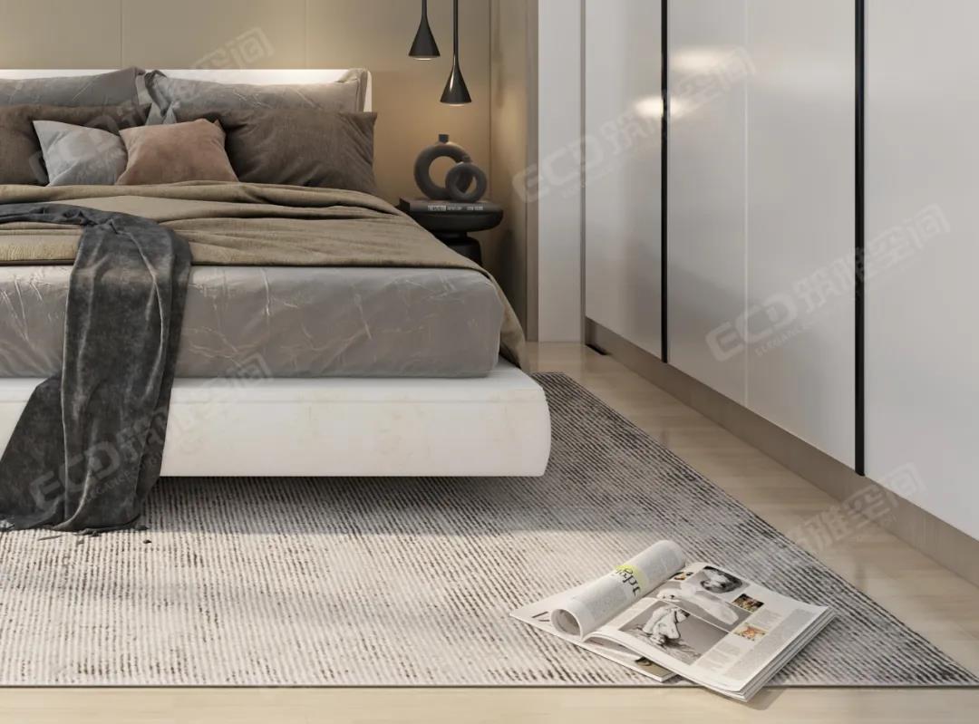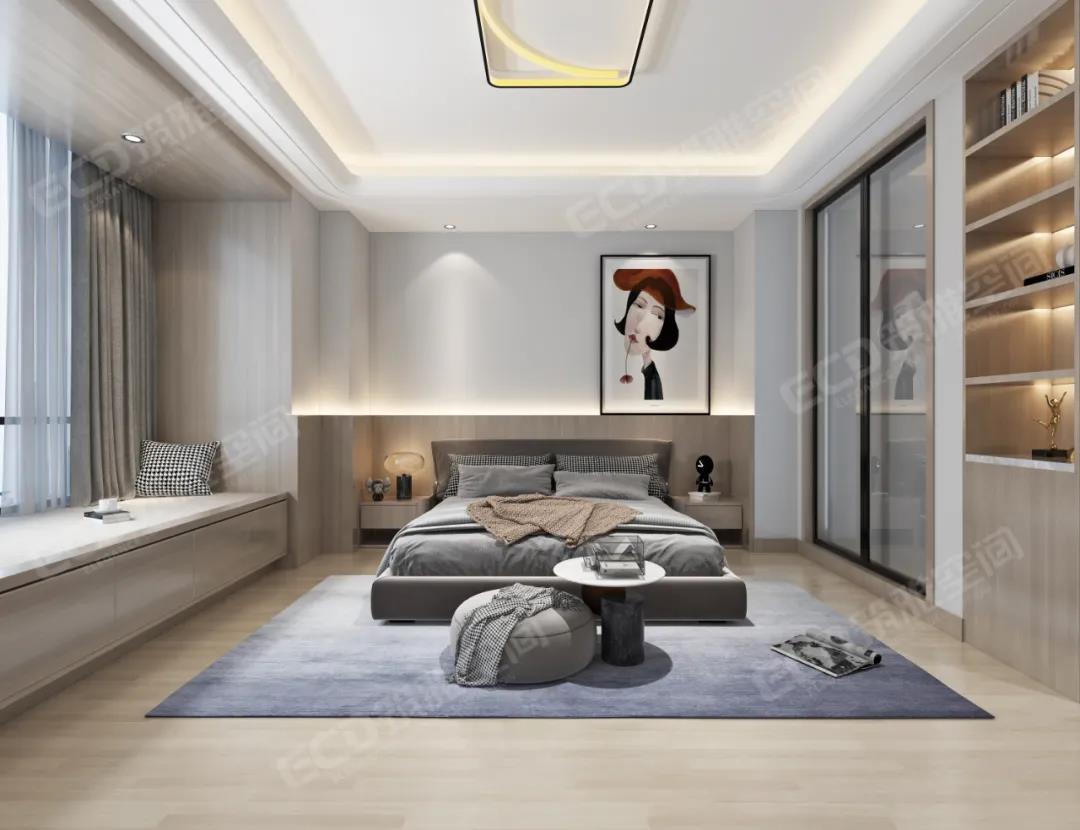 白色与木色搭配的主色调,借助自然光影的变化,渲染出流动斑驳而透彻的感受。设计化繁为简,整体格调简奢中萦绕着温馨雅韵,半开放式收纳柜,更显格调,视觉上不显突兀,营造出如舒适惬意的生活体验。
